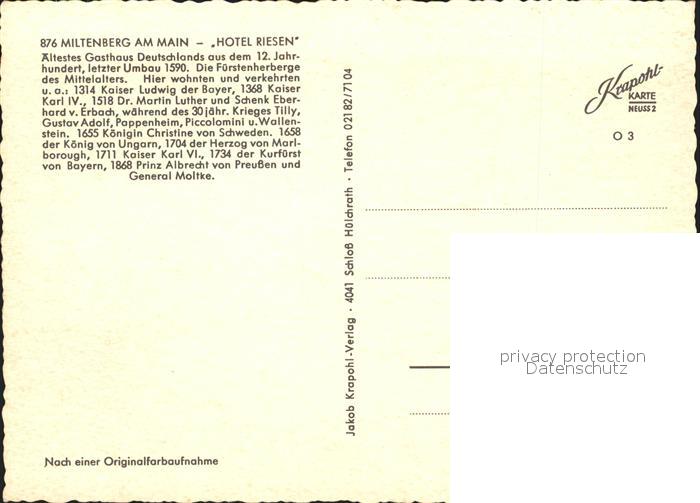 71909541 Miltenberg Main Hotel Riesen postalisch nicht gelaufen Erhaltung siehe scans KatCode: 11110009676139