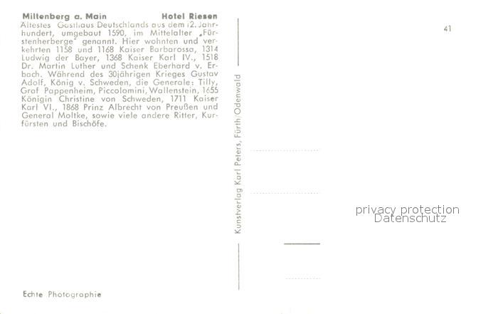 73316681 Miltenberg Main Hotel Riesen postalisch nicht gelaufen Erhaltung siehe scans [KathaD81] KatCode: 11110009676139