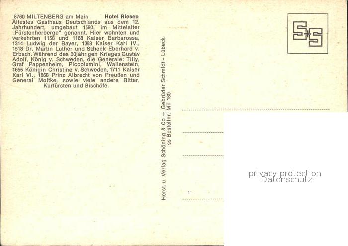 71892770 Miltenberg Main Hotel Riesen aeltestes Gasthaus Deutschlands 12. Jhdt. Fachwerk postalisch nicht gelaufen Erhaltung siehe scans KatCode: 11110009676139