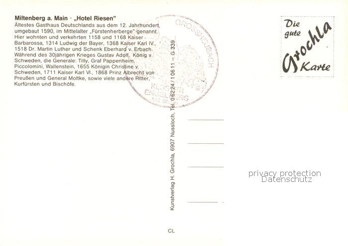 73175124 Miltenberg Main Hotel Riesen aeltestes Gasthaus Deutschlands 12. Jhdt. Fachwerkhaus Historisches Gebaeude postalisch nicht gelaufen Erhaltung siehe scans [FriedD77] KatCode: 11110009676139