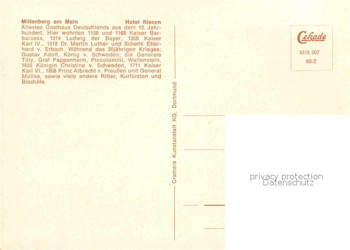 72692287 Miltenberg Main Hotel Riesen aeltestes Gasthaus Deutschlands 12. Jhdt. Fachwerkhaus postalisch nicht gelaufen Erhaltung siehe scans [FriedD77] KatCode: 11110009676139