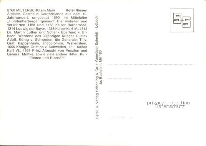 72527664 Miltenberg Main Hotel Riesen aeltestes Gasthaus Deutschlands 12. Jhdt. Fachwerkhaus postalisch nicht gelaufen Erhaltung siehe scans KatCode: 11110009676139