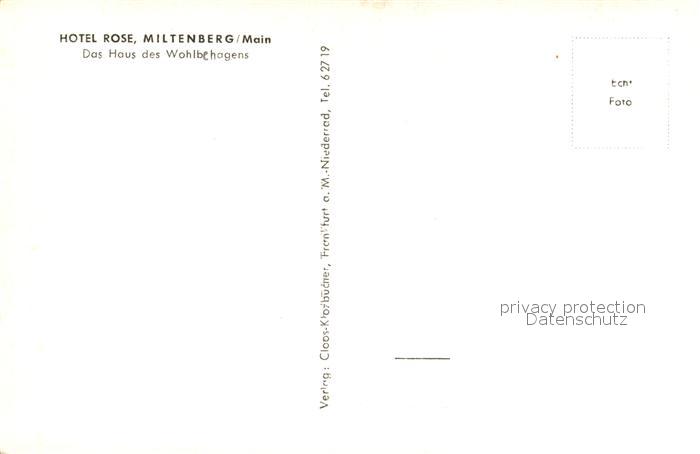 73254988 Miltenberg Main Hotel Rose Mainpartie postalisch nicht gelaufen Erhaltung siehe scans [WerneD78] KatCode: 11110009676139