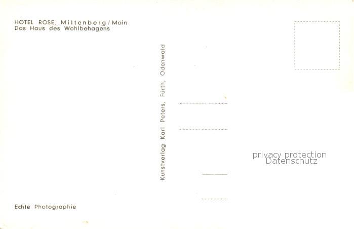 73254989 Miltenberg Main Hotel Rose Mainpartie postalisch nicht gelaufen Erhaltung siehe scans [WerneD78] KatCode: 11110009676139