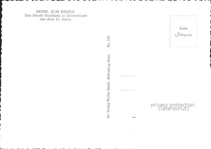 72923313 Miltenberg Main Hotel zum Riesen postalisch nicht gelaufen Erhaltung siehe scans [WerneD48] KatCode: 11110009676139