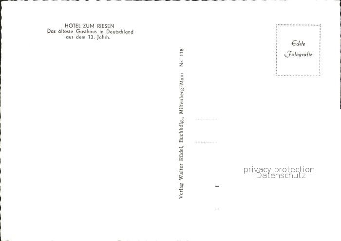 72079020 Miltenberg Main Hotel zum Riesen Fachwerkhaus 13. Jhdt. aelteste Gasthaus in Deutschland postalisch nicht gelaufen KatCode: 11110009676139
