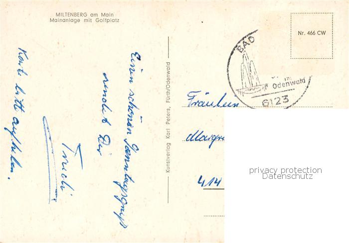 73813837 alte Postkarte Miltenberg Main Mainanlage mit Golfplatz postalisch gelaufen Erhaltung siehe scans [WerneD78] KatCode: 11110009676139