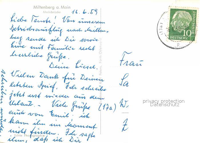 72788622 alte Postkarte Miltenberg Main Mainbruecke postalisch gelaufen Erhaltung siehe scans [AndreD76] KatCode: 11110009676139