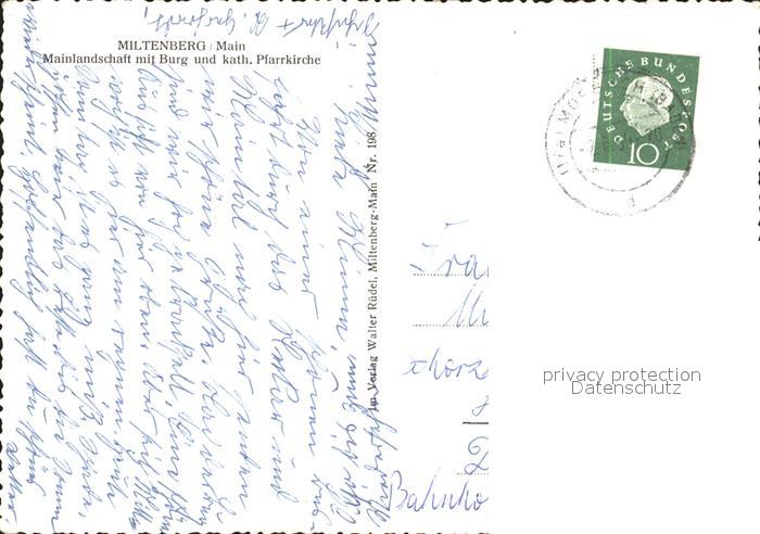 72098972 alte Postkarte Miltenberg Main Mainlandschaft Burg Katholische Pfarrkirche postalisch gelaufen Erhaltung siehe scans KatCode: 11110009676139