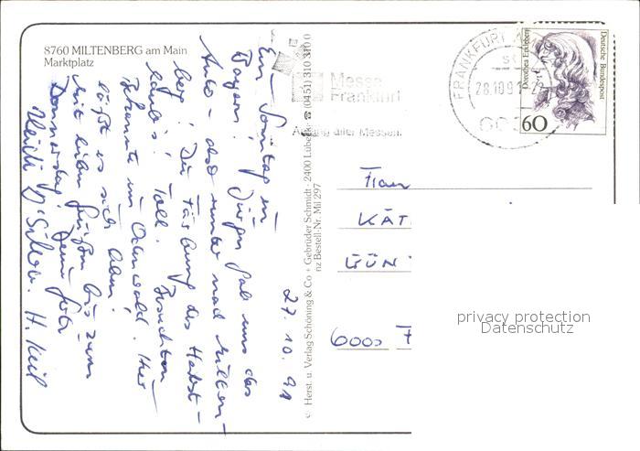 72492024 alte Postkarte Miltenberg Main Marktplatz postalisch gelaufen Erhaltung siehe scans KatCode: 11110009676139