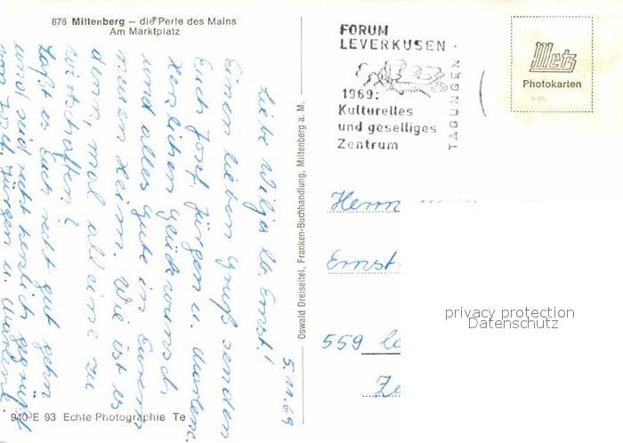 72901096 alte Postkarte Miltenberg Main Marktplatz postalisch gelaufen Erhaltung siehe scans [PaolaD17] KatCode: 11110009676139