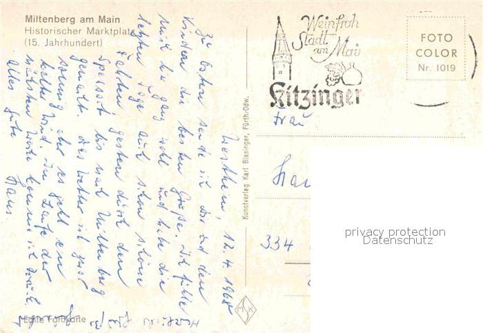 72909940 alte Postkarte Miltenberg Main Marktplatz Fachwerk Schnatterloch postalisch gelaufen Erhaltung siehe scans [LiesaD40] KatCode: 11110009676139