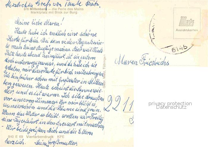 72740695 alte Postkarte Miltenberg Main Marktplatz mit Burgblick postalisch gelaufen Erhaltung siehe scans [WerneD78] KatCode: 11110009676139