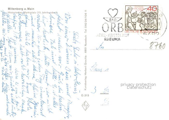 72939190 alte Postkarte Miltenberg Main Marktplatz Schnatterloch postalisch gelaufen Erhaltung siehe scans [PaolaD17] KatCode: 11110009676139