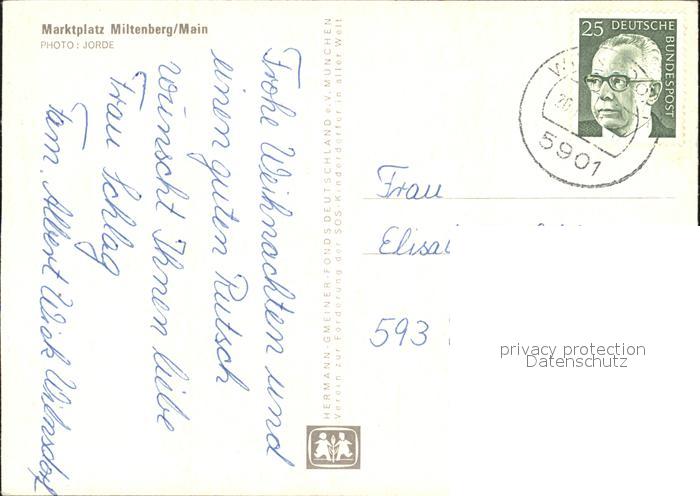 72223425 alte Postkarte Miltenberg Main Marktplatz Weihnachtsbaum postalisch gelaufen Erhaltung siehe scans KatCode: 11110009676139