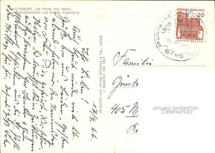 72009081 alte Postkarte Miltenberg Main mit Grossheubach und Kloster Engelberg postalisch gelaufen KatCode: 11110009676139