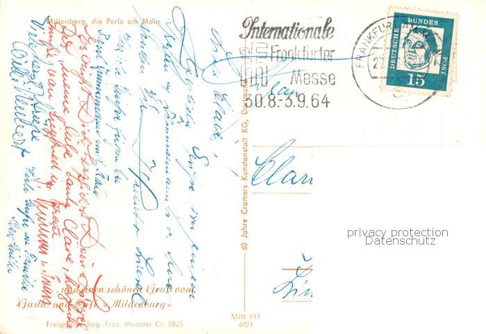 73836051 alte Postkarte Miltenberg Main Panorama postalisch gelaufen Fliegeraufnahme Erhaltung siehe scans [FriedD77] KatCode: 11110009676139