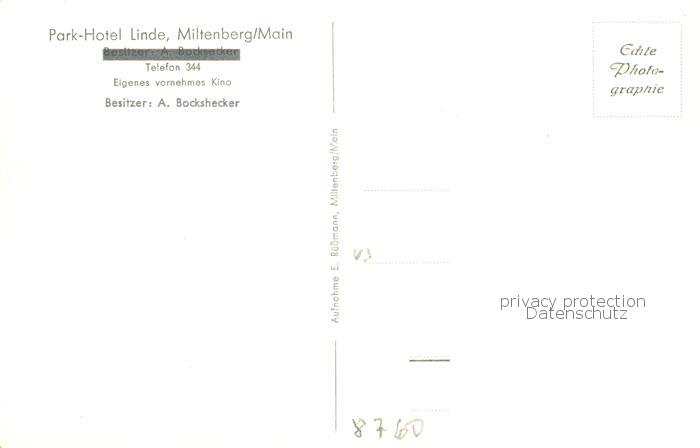 73772218 Miltenberg Main Park Hotel Linde postalisch nicht gelaufen Erhaltung siehe scans [FriedD77] KatCode: 11110009676139