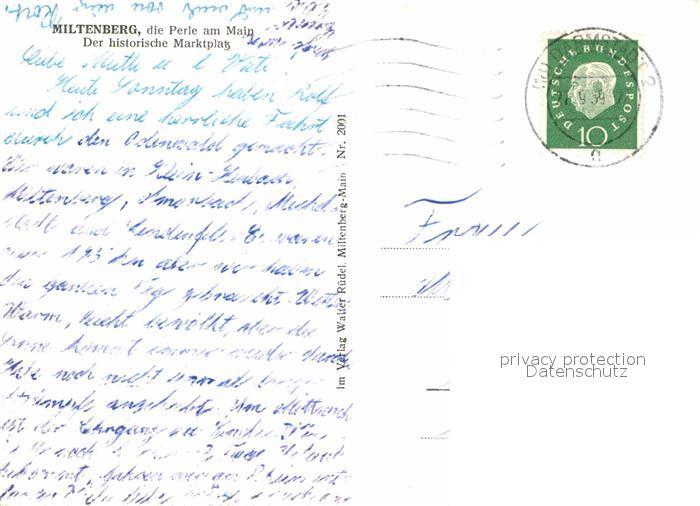 72795565 alte Postkarte Miltenberg Main Perle am Main Marktplatz Fachwerk postalisch gelaufen Erhaltung siehe scans [LiesaD40] KatCode: 11110009676139