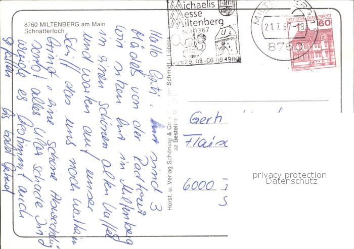 72452681 alte Postkarte Miltenberg Main Schnatterloch postalisch gelaufen Erhaltung siehe scans KatCode: 11110009676139