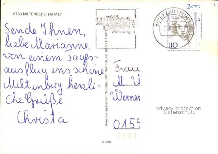 72505443 alte Postkarte Miltenberg Main Schnatterloch Mildenburg Hotel Riesen Mainbruecke postalisch gelaufen Erhaltung siehe scans KatCode: 11110009676139