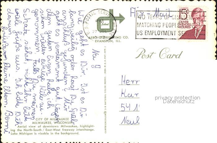72479622 old postcard Milwaukee Wisconsin City Downtown aerial view postalisch gelaufen Erhaltung siehe scans KatCode: 14140520000000