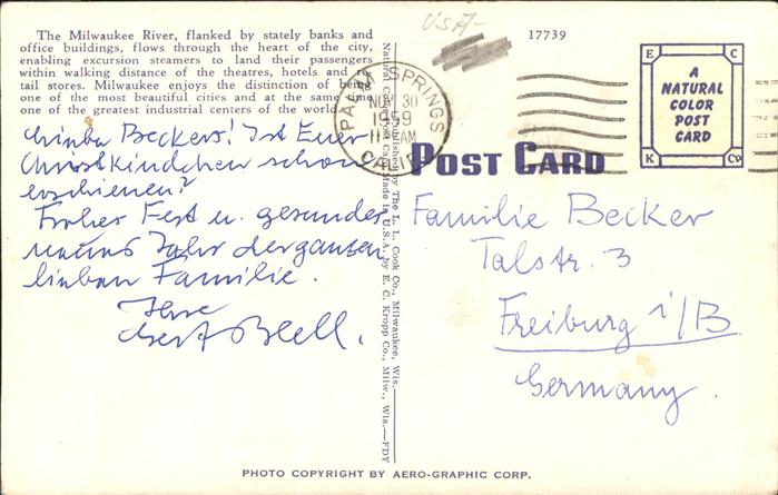 11491757 old postcard Milwaukee Wisconsin Downtown Milwaukee River aerial view postalisch gelaufen Erhaltung siehe scans KatCode: 14140520000000