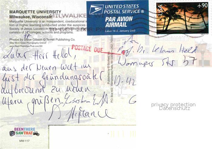 72674709 old postcard Milwaukee Wisconsin Marquette University postalisch gelaufen Erhaltung siehe scans [WerneD78] KatCode: 14140520000000