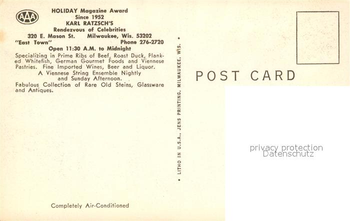73107086 Milwaukee Wisconsin Rendezvous of Celebrities postalisch nicht gelaufen Erhaltung siehe scans [WerneD78] KatCode: 14140520000000