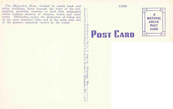 73961268 Milwaukee Wisconsin USA River Front south from Wells St. Bridge at night Illustration postalisch nicht gelaufen Erhaltung siehe scans [FriedD77] KatCode: 14140520000000