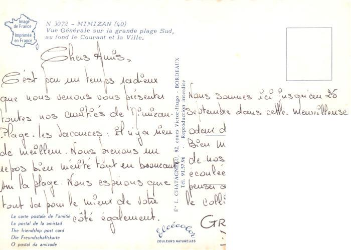 13945138 Mimizan 40 Landes Vue générale aérienne sur la gande plage sud et au fond le Courant et la ville postalisch nicht gelaufen Fliegeraufnahme Erhaltung siehe scans [FriedD77] Fliegeraufnahme Frie Katcode 11170040240184