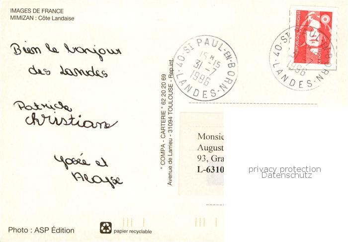 13789020 Mimizan Landes Côte Landaise Plage vue aérienne postalisch gelaufen Fliegeraufnahme Erhaltung siehe scans [FriedD77] Fliegeraufnahme carte postale Frie Katcode 11170040240184