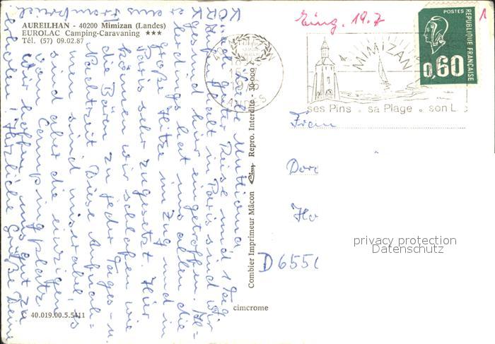 12034441 carte postale Mimizan Landes Eurolac Camping Caravaning postalisch gelaufen Erhaltung siehe scans KatCode: 11170040240184