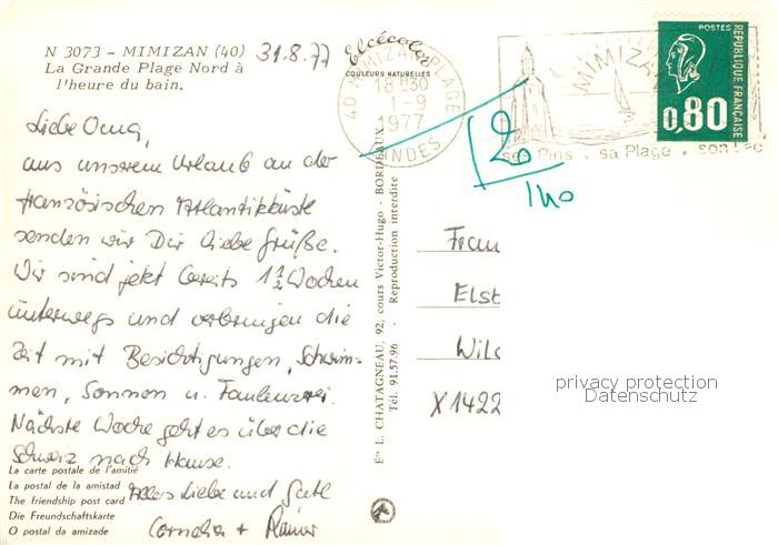 13787859 Mimizan Plage Grande Plage Nord a l’heure du bain Vue aerienne postalisch gelaufen Erhaltung siehe scans [WerneD78] carte postale Wern Katcode 11170040240184