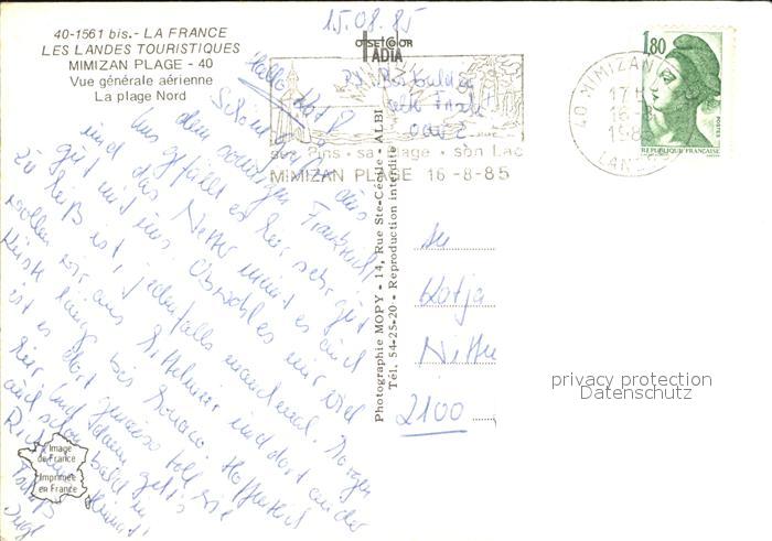 12494275 carte postale Mimizan Plage Luftbild postalisch gelaufen Erhaltung siehe scans KatCode: 11170040240184