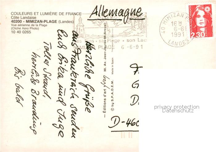 13787268 Mimizan Plage Vue aérienne de la plage postalisch gelaufen Fliegeraufnahme Erhaltung siehe scans [FriedD77] Fliegeraufnahme carte postale Frie Katcode 11170040240184