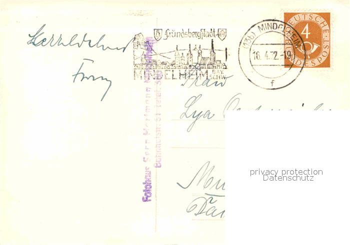 72776472 alte Postkarte Mindelheim Rathaus postalisch gelaufen Erhaltung siehe scans [KathaD81] KatCode: 11110009778173