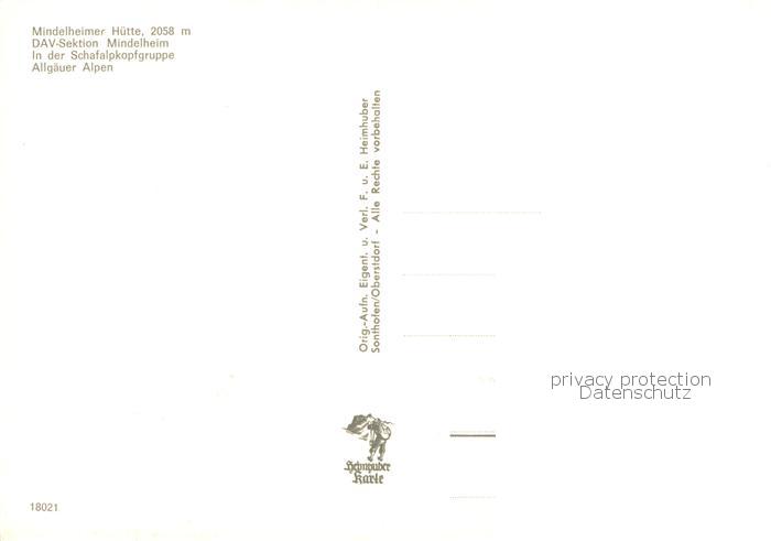 73785376 Mindelheimerhuette 2058m Schafalpkopfgruppe Berghuette Allgaeuer Alpen postalisch nicht gelaufen Erhaltung siehe scans [FriedD77] Frie Katcode 11110009780133