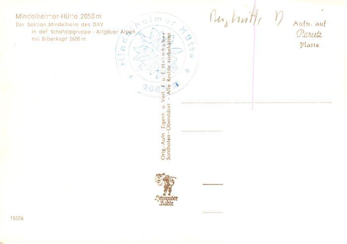 73937223 Mindelheimerhuette 2058m Schafalpkopfgruppe Oberstdorf in der Schafalpgruppe mit Biberkopf postalisch nicht gelaufen Erhaltung siehe scans [WerneD78] Wern Katcode 11110009780133