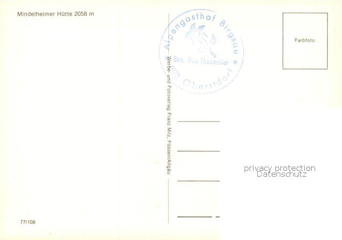 73252436 Mindelheimerhuette Alpengasthof Birgsau postalisch nicht gelaufen Erhaltung siehe scans [WerneD78] KatCode: 11110009780133