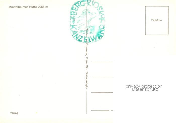 72962877 Mindelheimerhuette mit Kanzelwand postalisch nicht gelaufen Erhaltung siehe scans [WerneD78] KatCode: 11110009780133
