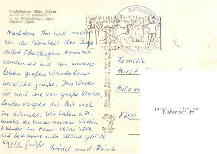72825980 alte Postkarte Mindelheimerhuette Steinwild Widderstein Gastraum postalisch gelaufen Erhaltung siehe scans [AndreD76] KatCode: 11110009780133