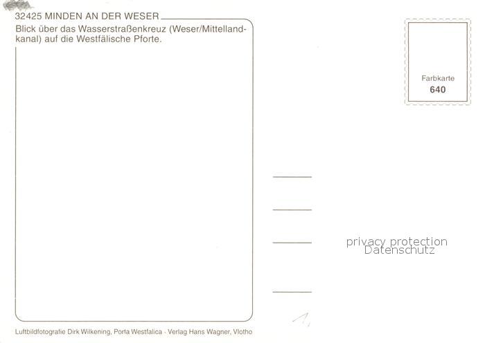 73046627 Minden Westfalen Fliegeraufnahme mit Weser Mittellandkanal und Wiehengebirge postalisch nicht gelaufen Erhaltung siehe scans [FriedD77] KatCode: 11110005770024