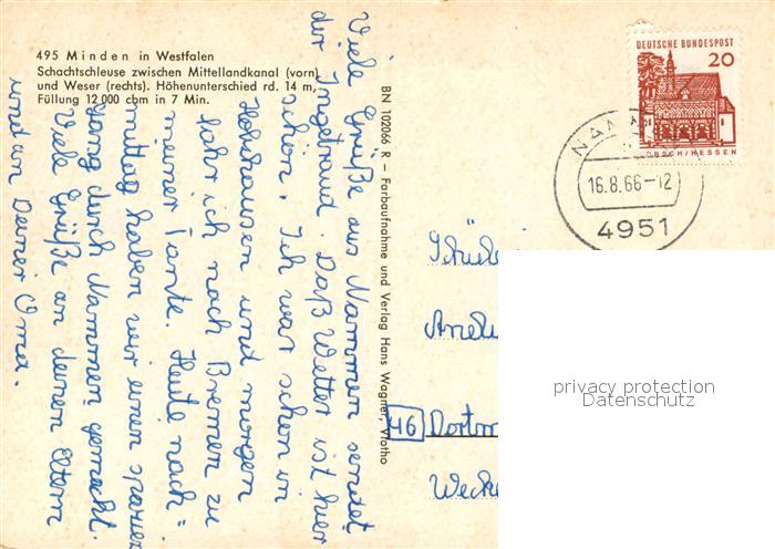 73106366 alte Postkarte Minden Westfalen Fliegeraufnahme Schachtschleuse postalisch gelaufen Erhaltung siehe scans [KathaD81] KatCode: 11110005770024