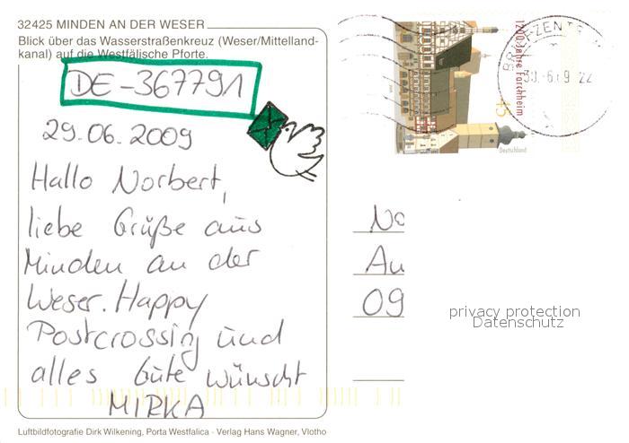 73106365 alte Postkarte Minden Westfalen Fliegeraufnahme postalisch gelaufen Erhaltung siehe scans [KathaD81] KatCode: 11110005770024