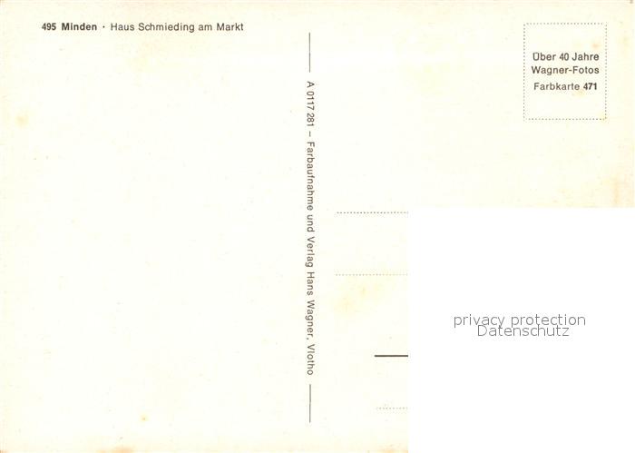 73043592 Minden Westfalen Haus Schmieding am Markt Historisches Gebaeude postalisch nicht gelaufen Erhaltung siehe scans [FriedD77] KatCode: 11110005770024