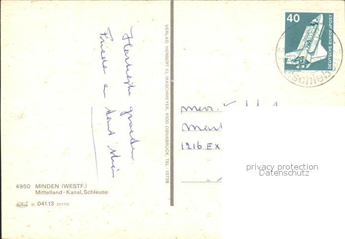 72283505 alte Postkarte Minden Westfalen Mittelland Kanal Schleuse postalisch gelaufen Erhaltung siehe scans KatCode: 11110005770024
