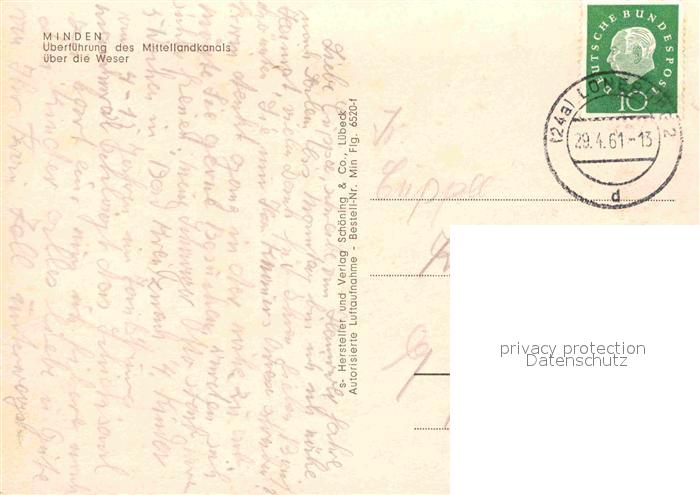 72635929 alte Postkarte Minden Westfalen Mittellandkanal postalisch gelaufen Erhaltung siehe scans [NatalD47] KatCode: 11110005770024