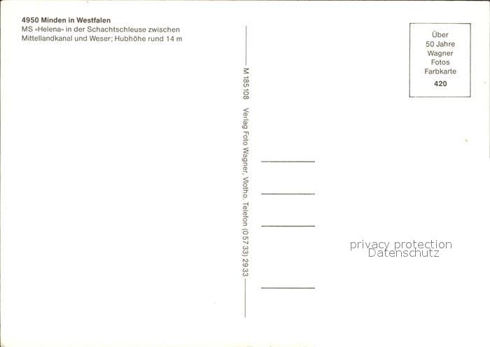 72478587 Minden Westfalen MS Helena Schachtschleuse zwischen Mittellandkanal und Weser postalisch nicht gelaufen Erhaltung siehe scans KatCode: 11110005770024