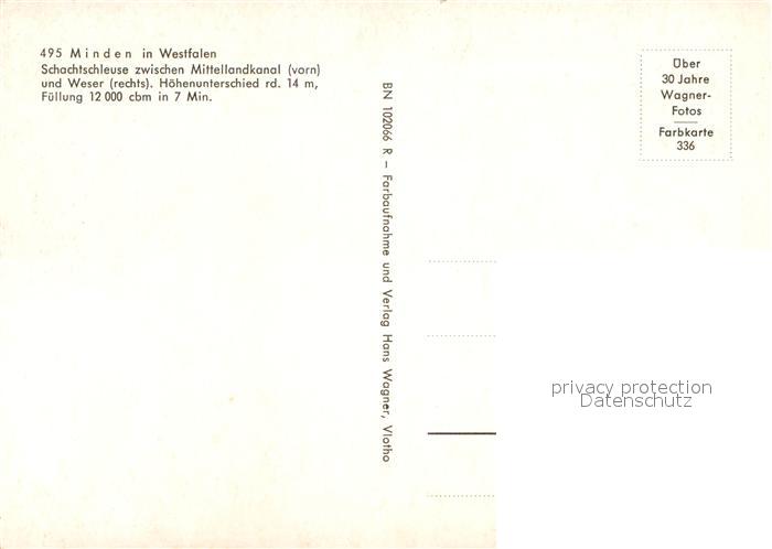 72946885 Minden Westfalen Schachtschleuse Mittellandkanal Weser postalisch nicht gelaufen Erhaltung siehe scans [KathaD81] KatCode: 11110005770024